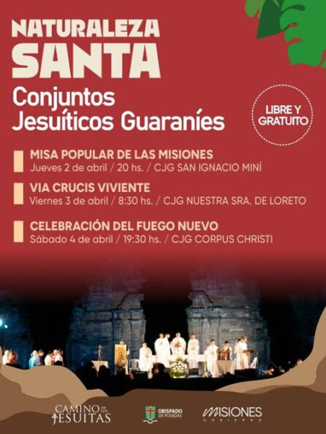 AGENCIA MISIONES.UNO | El Gobierno de Misiones impulsa una nueva edición del programa “Naturaleza Santa 2026”, que se desarrollará del 2 al 5 de abril con actividades en más de quince municipios y una propuesta central en San Ignacio que combinará celebración litúrgica y un espectáculo musical.