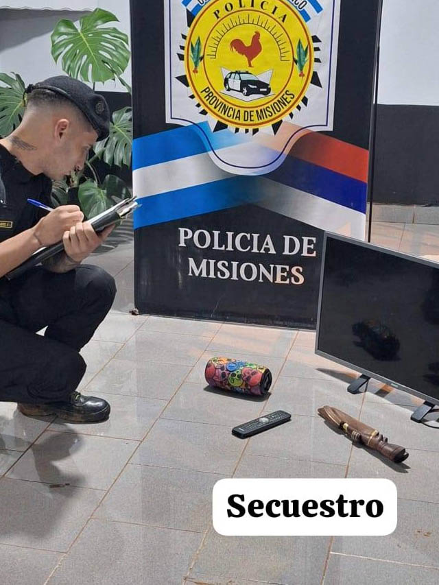 En otro procedimiento, vinculado a un robo ocurrido el 7 de abril por la mañana en el barrio Mate Rojo, delincuentes ingresaron a una vivienda tras dañar aberturas y se llevaron varios elementos, entre ellos un televisor, cuchillos artesanales y un parlante. Mediante el relevamiento de cámaras, los uniformados lograron identificar al autor y a un acompañante que había sido visto merodeando la zona días antes. En este marco, se recuperaron parte de los objetos sustraídos, mientras continúan las tareas para detener al principal implicado.